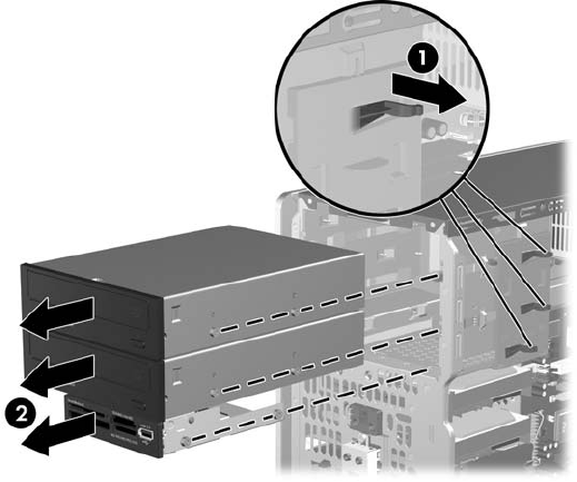 istediğiniz sürücünün mandal sürücü desteğindeki çıkarma tırnağını kaldırın (1) ve sürücüyü sürücü