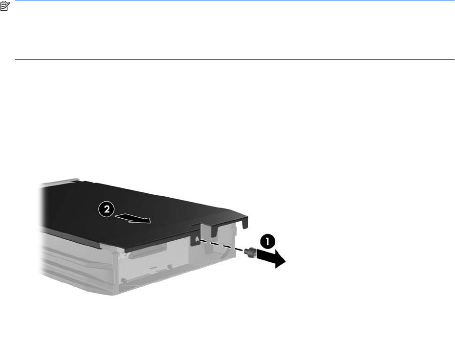 2. Taşıyıcının arkasından (1) vidayı çıkarıp taşıyıcının üst kapağını (2) kaydırıp çıkarı n.