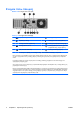 Στοιχεία πίσω πλευράς Εικόνα 1-4 Στοιχεία πίσω πλευράς Πίνακας 1-3 Στοιχεία πίσω πλευράς 1 Σειριακή υποδοχή 6 Υποδοχή οθόνης VGA 2 Παράλληλη υποδοχή 7 Υποδοχή ποντικιού PS/2 (πράσινη) 3 Υποδοχή καλωδίου τροφοδοσίας 8 Υποδοχή πληκτρολογίου PS/2 (μωβ) 4 Υποδοχή δικτύου RJ-45 9 Υποδοχή εξόδου για συσκευές ήχου που τροφοδοτούνται με ρεύμα (πράσινη) 5 USB (Universal Serial Bus) 10 Υποδοχή εισόδου ήχου (μπλε) ΣΗΜΕΙΩΣΗ Η διάταξη και ο αριθμός των υποδοχών ενδέχεται να ποικίλλουν ανάλογα με το