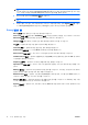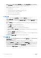 표 2-10 마우스 문제 해결 (계속) 마우스가 동작에 응답하지 않거나 너무 느립니다. 원인 해결책 마우스를 수리해야 합니다. 전 세계 공통 제한 보증의 조항과 조건을 확인하십시오. 무선 장치 오류. 1. 가능한 경우 소프트웨어에서 장치 상태를 확인합니다. 2. 장치 배터리를 확인하거나 교체합니다. 3. 수신기 및 마우스를 재설정합니다. 컴퓨터가 대기 모드에 있습니다. 대기 모드에서 다시 계속하려면 전원 버튼을 누릅니다. 주의: 대기 모드에서 다시 계속하는 경우 전원 버튼을 4 초 이 상 누르지 마십시오. 4 초 이상 누르면 컴퓨터가 종료되어 저 장되지 않은 데이터를 잃게 됩니다. 마우스가 수직 또는 수평으로만 움직이거나 제대로 움직이지 않습니다. KOWW 원인 해결책 마우스 볼이나 볼과 맞닿는 회전 인코더 축이 더럽습니다. 마우스 밑면에서 롤러 볼 덮개를 열고 컴퓨터 매장에서 구입 할 수 있는 마우스 청소 키트로 내부 부품을 청소합니다.