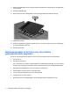 14. Plaats de accu terug. 15. Draai de ondersteboven liggende computer weer om, en sluit vervolgens de externe voedingsbron en de randapparatuur weer aan. 16. Zet de computer aan.