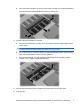 13. Kiristä muistimoduulipaikan kannen ruuvi (3). 14. Aseta akku paikalleen. 15. Käännä tietokone ylösalaisin ja liitä ulkoinen virtalähde ja ulkoiset laitteet. 16. Käynnistä tietokone. Päämuistimoduulipaikassa olevan muistimoduulin päivittäminen Päivitä päämuistimoduulipaikassa oleva muistimoduuli seuraavasti: 1. Tallenna työtiedostot. 2. Sammuta tietokone. Jos et ole varma, onko tietokoneen virta katkaistu vai onko tietokone lepotilassa, käynnistä tietokone painamalla virtapainiketta.