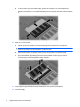 13. Stram skruen på dekslet over minnemodulbrønnen (3). 14. Sett på plass batteriet. 15. Snu datamaskinen slik at høyre side vender opp, og koble til igjen ekstern strøm og eksterne enheter. 16. Slå på maskinen.