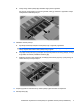 13. Dokręć śrubę pokrywy komory modułu pamięci (3). 14. Włóż baterię na miejsce. 15. Obróć komputer prawą stroną do góry a następnie podłącz zewnętrzne zasilanie i urządzenia zewnętrzne. 16. Włącz komputer. Dodawanie modułu pamięci do podstawowego gniazda modułu pamięci Aby dodać moduł pamięci do podstawowego gniazda modułu pamięci, wykonaj następujące kroki: 1. Zapisz swoją pracę. 2. Wyłącz komputer.