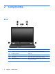 Conteúdo 1 Identificar hardware 2 Componentes Ecrã ...................................................................................................................................................... 2 Componentes da parte superior ........................................................................................................... 3 Dispositivos apontadores ..................................................................................................... 3 Luzes ................................