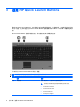 设置指点设备首选项 使用 Windows® 中的“鼠标属性”来自定义指点设备的设置,比如按钮配置、单击速度和光标选项。 要访问“鼠标属性”,请选择开始 > 设备和打印机。然后,右击代表笔记本计算机的设备,并选择鼠标 设置。 使用触摸板 要移动指针,可沿您要移动指针的方向在触摸板表面上滑动您的手指。触摸板按钮的使用方式与外接鼠 标对应键的使用方式相同。要使用触摸板垂直滚动区域上下滚动,可在触摸板的槽线上面上下滑动您的 手指。 注: 如果您使用触摸板移动指针,则必须先从触摸板上抬起手指,然后转到滚动区。如果手指直接从 触摸板滑动到滚动区,则不会激活滚动功能。 使用指点杆 按照您要在屏幕上移动指针的方向按压指点杆。指点杆左右按钮的使用方式与外接鼠标左右键的使用方 式相同。 连接外接鼠标 外接 USB 鼠标可以通过计算机上的一个 USB 端口与笔记本计算机相连。还可以使用对接设备选件上的 端口将 USB 鼠标连接到系统。 2 第 1 章 使用指点设备