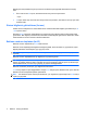İşaretleme aygıtı tercihlerini ayarlama Düğme yapılandırması tıklatma hızı ve işaretçi seçenekleri gibi işaretleme aygıtları ayarları için, Windows®’daki Fare Özellikleri’ni kullanın. Fare Özellikleri'ne erişmek için Başlat > Denetim Masası > Yazıcılar ve Diğer Donanım > Fare öğesini seçin. Dokunmatik Yüzey’i Kullanma İşaret çubuğunu hareket ettirmek için, işaretçiyi ekranda hareket ettirmek istediğiniz yönde Dokunmatik Yüzey alanında parmağınızı kaydırın.