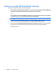Postopki za nastavljanje Prijava v upravitelja poverilnic Credential Manager Odvisno od konfiguracije se v upravitelja poverilnic Credential Manager lahko prijavite na enega od teh načinov: ● V področju za obvestila dvakrat kliknite ikono HP ProtectTools Security Manager. ● Kliknite Start, All Programs (Vsi programi) in nato izberite možnost HP ProtectTools Security Manager for Administrators (HP ProtectTools Security Manager za skrbnike).