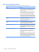 Embedded Security for HP ProtectTools (sólo en algunos modelos) 88 Breve descripción Detalles Solución La encriptación de carpetas, subcarpetas y archivos en una PSD causa un mensaje de error. Si el usuario copia archivos y carpetas en una PSD e intenta encriptar carpetas/ archivos o carpeta/subcarpetas, aparecerá el mensaje Error Applying Attributes (Error al aplicar atributos). El usuario puede encriptar los mismos archivos en la unidad C:\ o una unidad de disco duro adicional instalada.