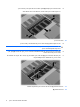 הוספה או החלפה של מודולי זיכרון תא מודול הזיכרון ממוקם בתחתית המחשב. ניתן לשדרג את קיבולת הזיכרון של המחשב על-ידי הוספת מודול זיכרון לחריץ הריק של מודול הרחבת הזיכרון או על- ידי שדרוג מודול הזיכרון הקיים בחריץ מודול הזיכרון הראשי. אזהרה! כדי לצמצם את הסכנה להתחשמלות ולגרימת נזק לציוד ,נתק את כבל המתח והסר את כל הסוללות לפני התקנת מודול זיכרון. זהירות :פריקת חשמל סטטי ) (ESDעלולה לגרום נזק לרכיבים אלקטרוניים .