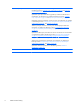Select To do this Change Password Enter, change, or delete a BIOS administrator password. HP SpareKey Enrollment Enroll or reset HP SpareKey, which is a set of security questions and answers used if you forget your password. DriveLock Passwords ● Enable/disable DriveLock on any computer hard drive (enabled by default). ● Change a DriveLock user password or master password. NOTE: DriveLock settings are accessible only when you enter Computer Setup by turning on (not restarting) the computer.