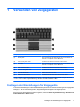 5 Verwenden von Ziffernblöcken Der Computer besitzt einen integrierten Ziffernblock und unterstützt auch einen optionalen externen Ziffernblock oder eine optionale externe Tastatur mit einem Ziffernblock. 16 Komponente Beschreibung (1) fn-Taste Zum Ausführen häufig verwendeter Systemfunktionen in Kombination mit einer Funktionstaste bzw. der esc-Taste. (2) LED für die num-Taste Leuchtet: Der num-Modus ist aktiviert.