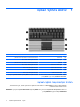 1 שימוש בהתקני הצבעה תיאור רכיב )(1 מוט הצבעה להזזת המצביע ולבחירה או הפעלה של פריטים על המסך. )(2 לחצן שמאלי של מוט הצבעה פועל כמו הלחצן השמאלי בעכבר חיצוני. )(3 לוח מגע* להזזת המצביע ולבחירה או הפעלה של פריטים על המסך. )(4 לחצן שמאלי של לוח המגע* פועל כמו הלחצן השמאלי בעכבר חיצוני. )(5 לחצן ימני של מוט ההצבעה פועל כמו הלחצן הימני בעכבר חיצוני. )(6 אזור הגלילה של לוח המגע* לגלילה למעלה או למטה.