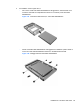 8. Collegare il cavo di alimentazione (1) e il cavo dati (2) alla parte posteriore dell'unità disco rigido.