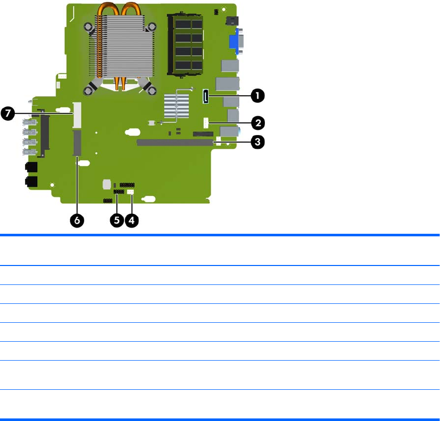 Za priključke na sistemski plošči glejte spodnjo sliko in preglednico.