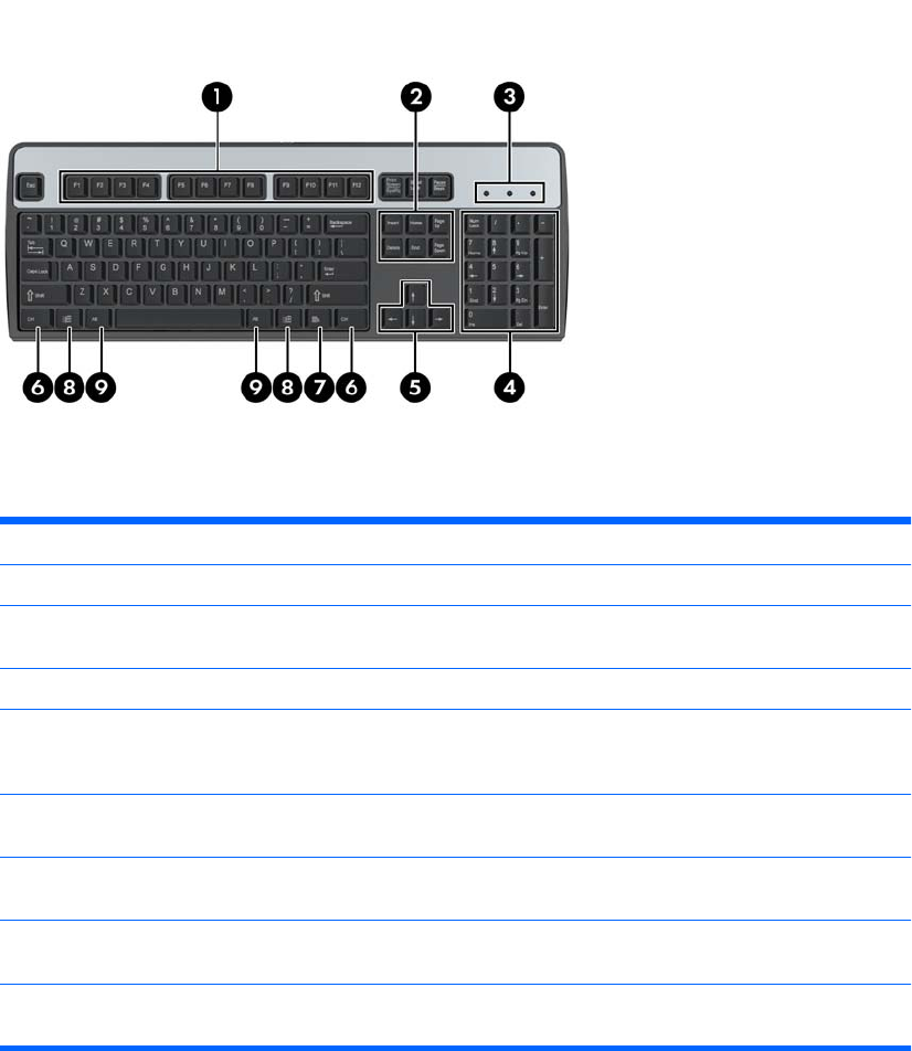 1 funkcijske tipke Izvajajo posebne funkcije, odvisne od programske aplikacije, ki jo uporabljate.