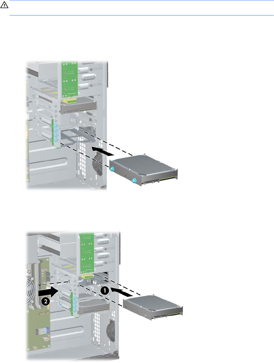 Slika 2-30 Nameščanje trdega diska v spodnji ležišči za pogone