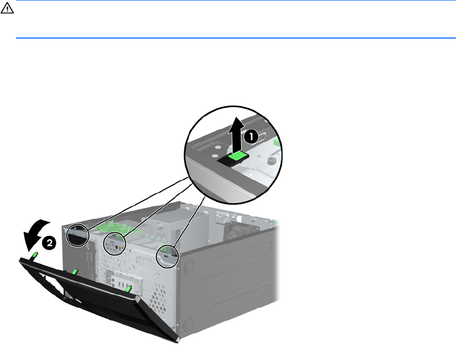 1. Odstranite ploščo za dostop do notranjosti računalnika in sprednjo ploščo.