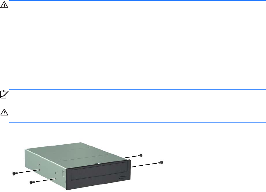 Slika 3-20 Namestitev vodilnih vijakov (prikazan je optični pogon)