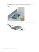 1. 111페이지의드라이브 베이에서 5.25 인치 드라이브 분리의 절차에 따라 5.25 인치 드라이브를 먼