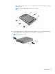 10. 13.34cm 드라이브 베이의 드라이브에 모든 전원 케이블 및 데이터 케이블을 다시 연결합니다.