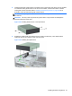8. If removing an optical drive, disconnect the power cable (1) and data cable (2) from the rear of