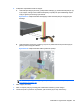 10. Naciśnij zielony zatrzask obok dysku twardego (1). Trzymając zatrzask mocujący naciśnięty,