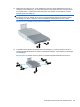 14. Чтобы поместить контейнер жесткого диска обратно в корпус компьютера, совместите