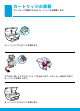 カートリッジの装着 プリンターに同梱された HP カートリッジを使用します。 カートリッジ アクセス ドアを開きます。 タブを引っ張ってプラスチック テープをはがします。カチッという音がするまで、 カートリッジを挿入します。 カートリッジ アクセス ドアを閉じます。 4