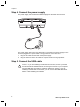 Chapter 1 Step 4. Connect the power supply The power supply has an attached cable that plugs into the back of the scanner. The power supply also has an AC cable that is connected to the power supply on one end and plugged into a power outlet or surge protector on the other end. 1. 2. Plug the AC cable into the back of the power supply. Plug the other end of the AC cable into a power outlet or a surge protector. Step 5.