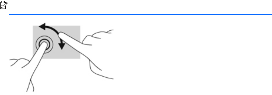 ● Novietojiet kreisās rokas rādītājpirkstu skārienpaneļa zonā. Izmantojot labo roku, velciet