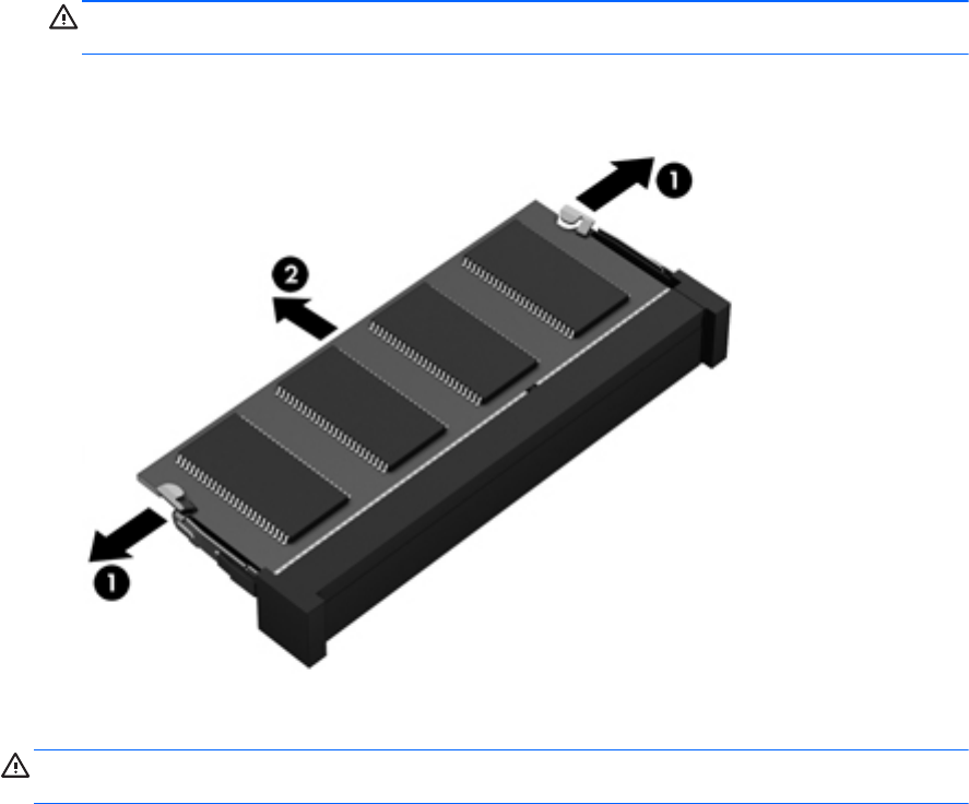 a. Atbīdiet aizspiedņus (1), kas atrodas abās atmiņas moduļa pusēs.