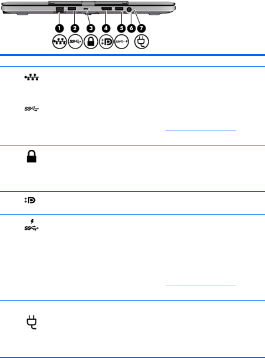 USB 3.0-opladningsport (strømførende) Til tilslutning af en valgfri USB-enhed, f. eks. et