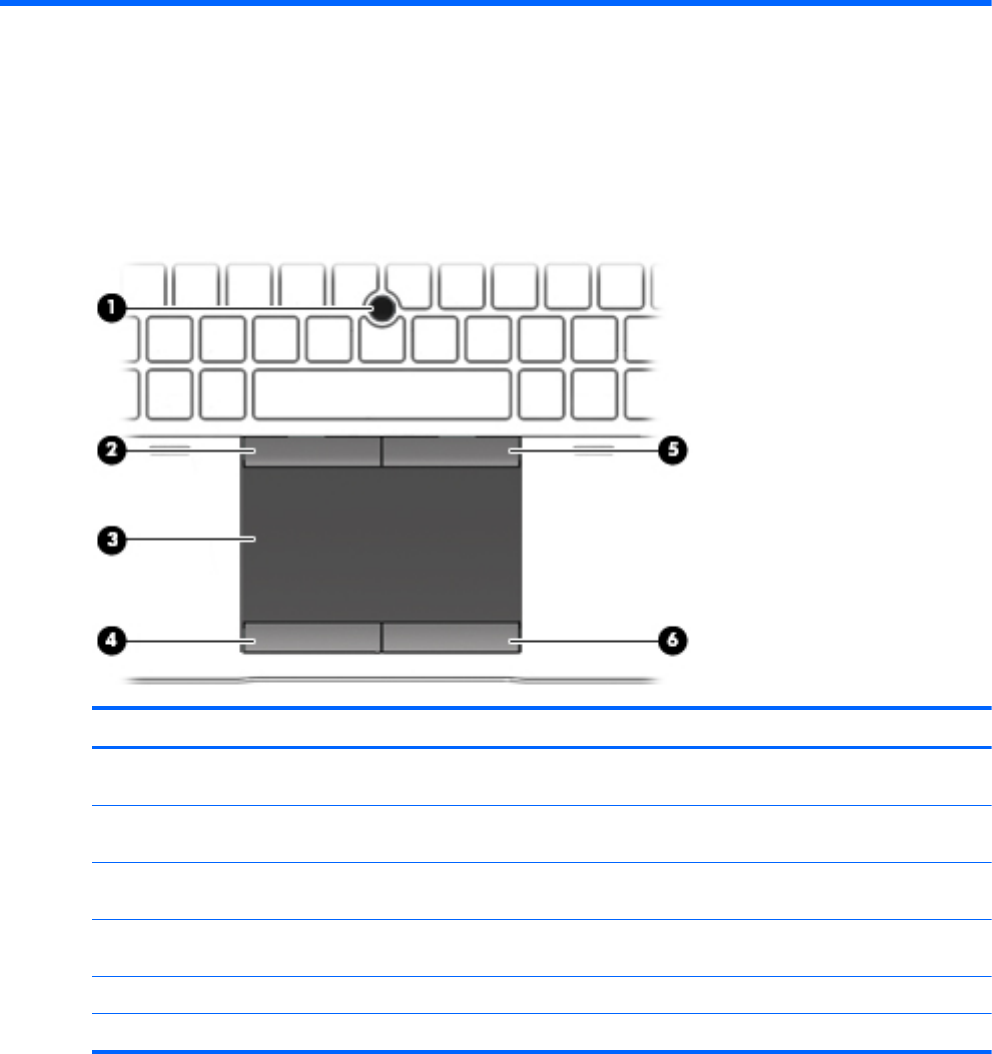 (3) ζώνη TouchPad Μετακινεί το δείκτη και επιλέγει ή ενεργοποιεί στοιχεία στην
