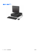 フロント パネルの取り付け フロント パネルの底辺にある 4 つのフックをシャーシの四角い穴(1)に差し込みます。フロント パ ネルの上側を、シャーシの所定の位置に収まりカチッという音がするまで押し込みます(2) 。 横置きから縦置きへの変更 お使いの省スペース型コンピューターは、HP から購入できるオプションの縦置き用スタンドを利用 すれば、縦置き構成でも使用できます。 1. コンピューターが開かれないように保護しているセキュリティ デバイスをすべて取り外しま す。 2. CD や USB フラッシュ ドライブなどのすべてのリムーバブル メディアをコンピューターから 取り出します。 3. オペレーティング システムを適切な手順でシャットダウンし、コンピューターおよび外付けデ バイスの電源をすべて切ります。 4.