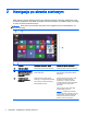 2 Nawigacja po ekranie startowym Ekran startowy stanowi centralne miejsce, które zapewnia dostęp do informacji i wiadomości e-mail, umożliwia przeglądanie sieci WWW, przesyłanie strumieniowe filmów, wyświetlanie zdjęć oraz dostęp do witryn serwisów społecznościowych. UWAGA: Ekran startowy konkretnego komputera może wyglądać inaczej niż przedstawiony na poniższej ilustracji.