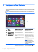 2 Navigieren auf der Startseite Die Startseite ist der zentrale Ausgangspunkt für den Zugriff auf Informationen und E-Mails, das Surfen im Internet, das Streamen von Videos, das Betrachten von Fotos und den Zugang zu sozialen Netzwerken. HINWEIS: Die Startseite Ihres Computers sieht möglicherweise anders als die folgende Abbildung aus. Aktion Verwenden von Tastatur und Maus Verwenden von Fingerbewegungen (1) App öffnen Klicken, um eine App zu starten. Tippen Sie auf eine App im Startbildschirm.
