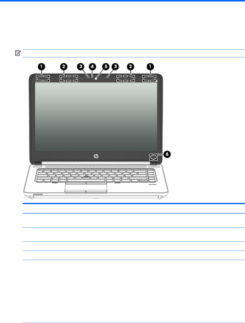 (2) WWAN antennas (2)* (select models only) Send and receive wireless signals to communicate with wireless wide