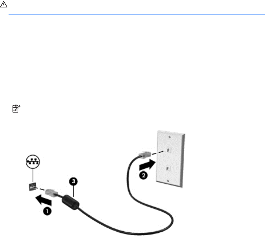 警告! 火傷や感電、火災、および装置の損傷を防ぐため、モデム ケーブルまたは電話ケーブルを