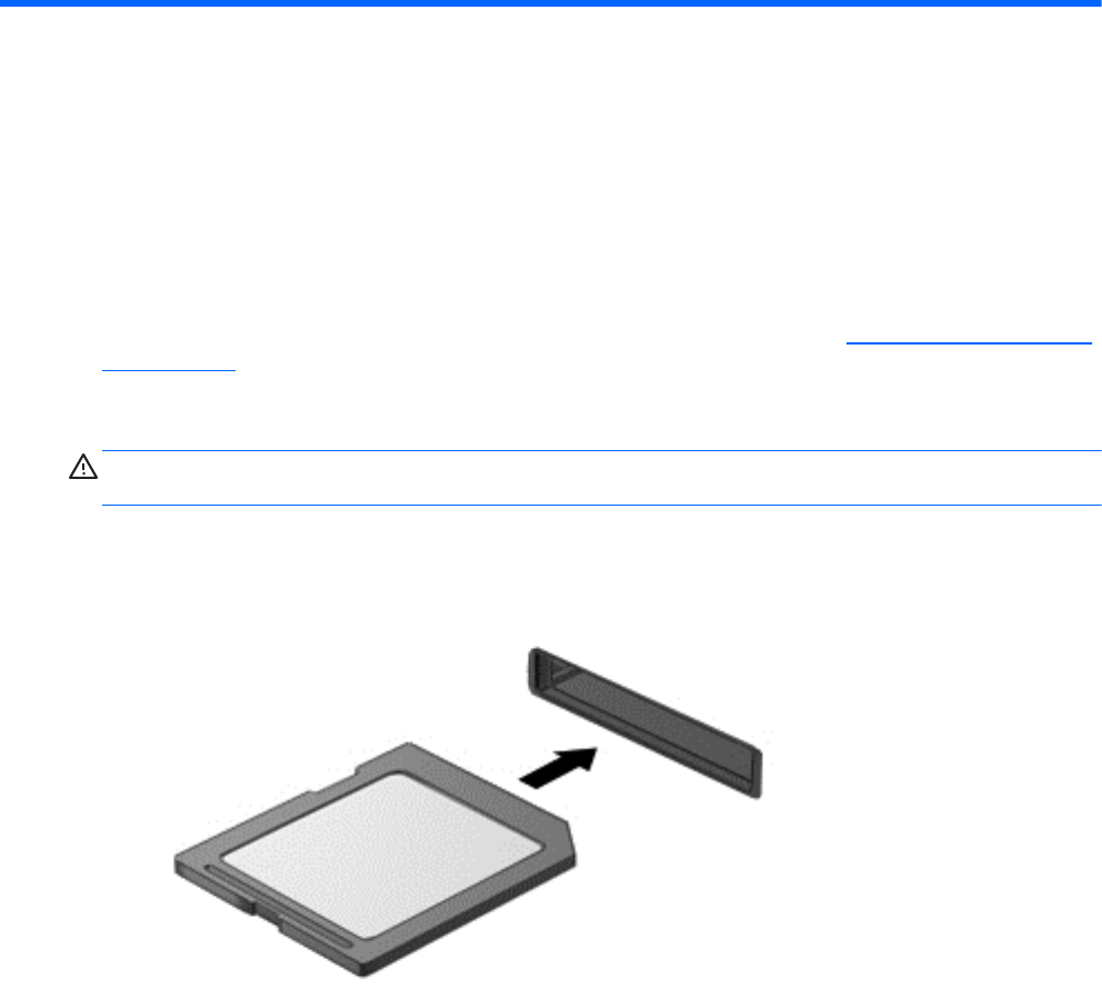 注意: メディア カード コネクタの損傷を防ぐため、メディア カードを挿入するときは無理な力