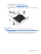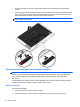6. Longgarkan keempat sekrup harddisk (1). Geser harddisk (2) ke depan, lalu lepaskan harddisk