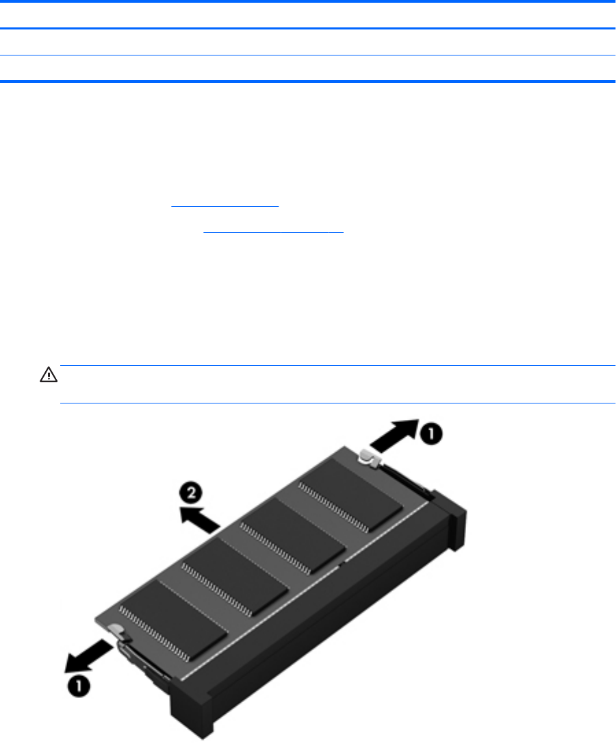 b. Grasp the edge of the memory module (2), and then gently pull the memory module out of the