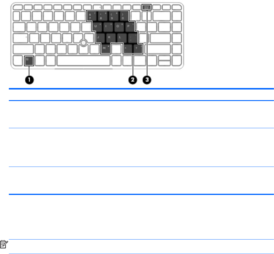 注記: 外付けキーボードまたはテンキーがコンピューターに接続されているときは、内蔵テンキー