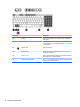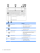 (4)   Venstre TouchPad-knap Fungerer som venstre knap på en ekstern mus.