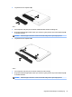 3. Drej batteriet (3) opad, og tag derefter batteriet (4) ud af computeren.