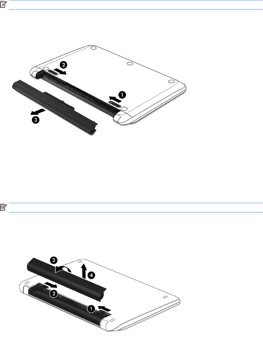 3. Obrnite akumulator (3) navzgor, nato pa ga vzemite iz računalnika (4).