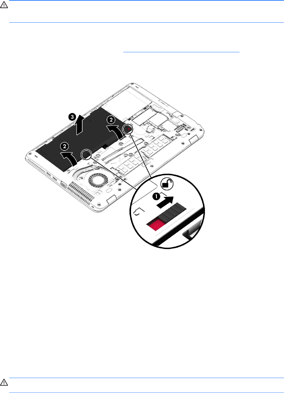 3. Gurnite zasune za oslobađanje baterije (1) i onda podignite bateriju (2).