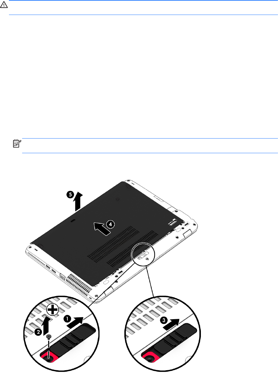 2. Σύρετε το κάλυμμα συντήρησης προς την πρόσοψη του υπολογιστή (4) και ανασηκώστε το (5)
