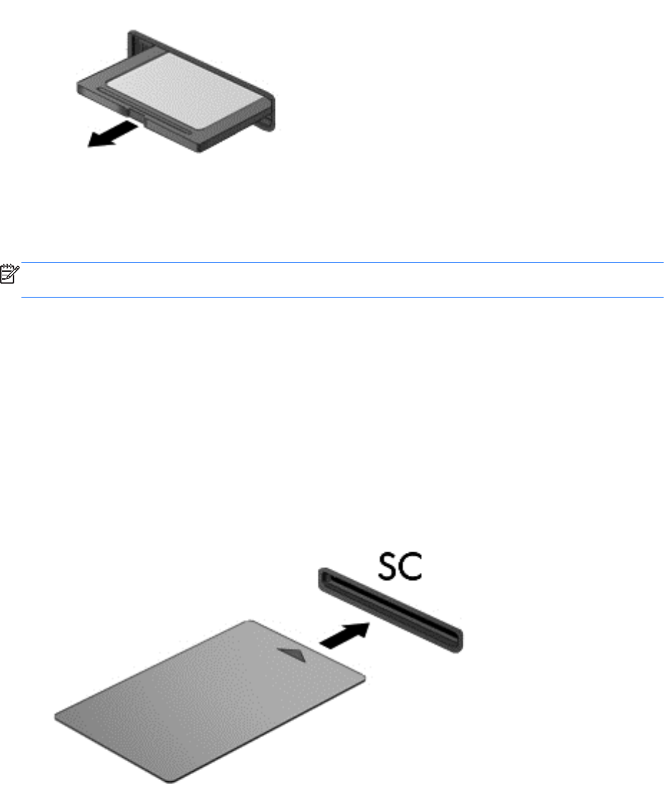1. Laikykite kortelę pažymėta puse aukštyn ir atsargiai stumkite kortelę į intelektualiųjų kortelių