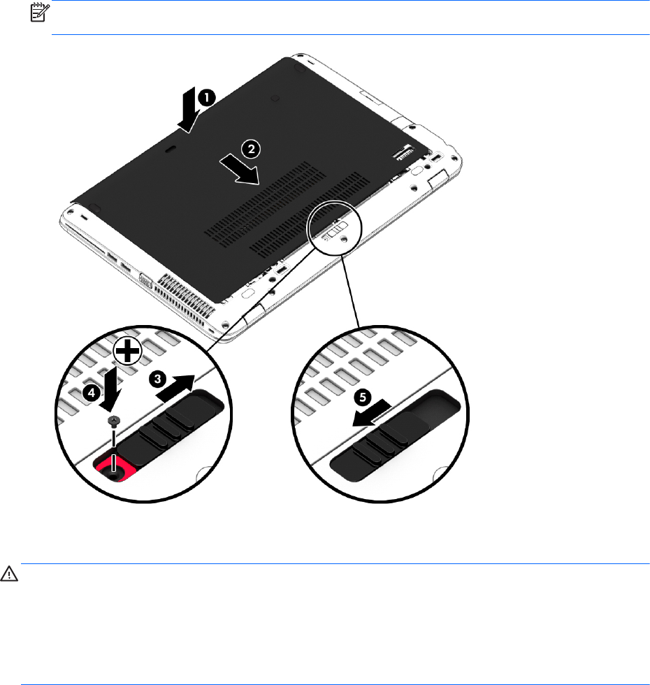 Stumkite fiksatorių į dešinę pusę, kad techninės priežiūros durelės užsifiksuotų (5).